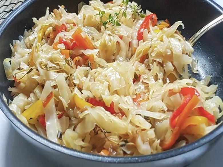 After 10 minutes, reduce the heat to low and continue to cook for an additional 5 minutes, until the cabbage is soft and tender. Remove from the heat and remove the stalks of thyme before serving.